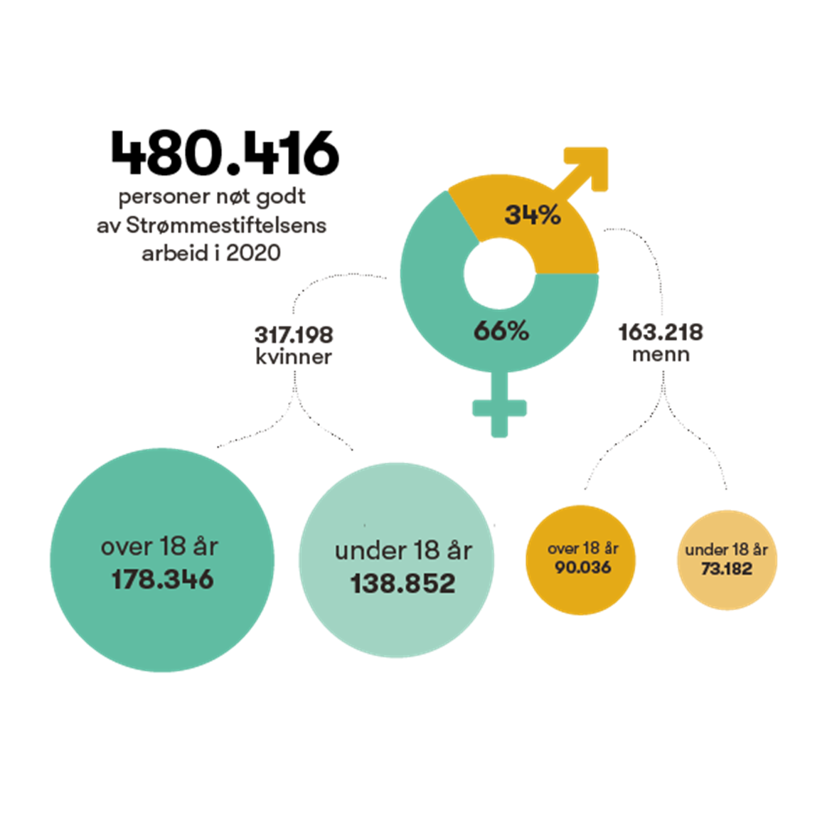 I alt ble det samlet inn 218.247.778 kroner i 2020 og brukt 213.250.513 kroner. Vel 98 millioner av disse kommer fra offentlig sektor. Resten er gaver fra fast givertjeneste, organisasjoner, næringsliv, private givere og så videre.
